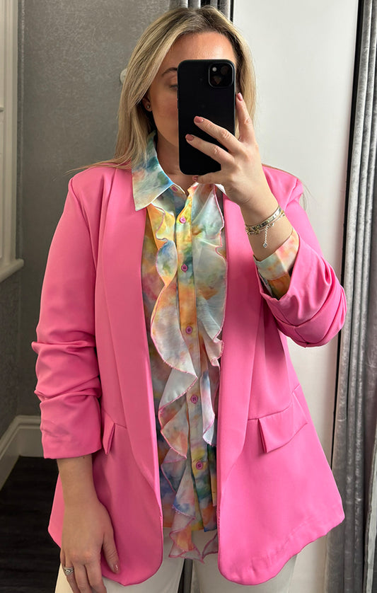 Light Blue Ruched Sleeve Blazer