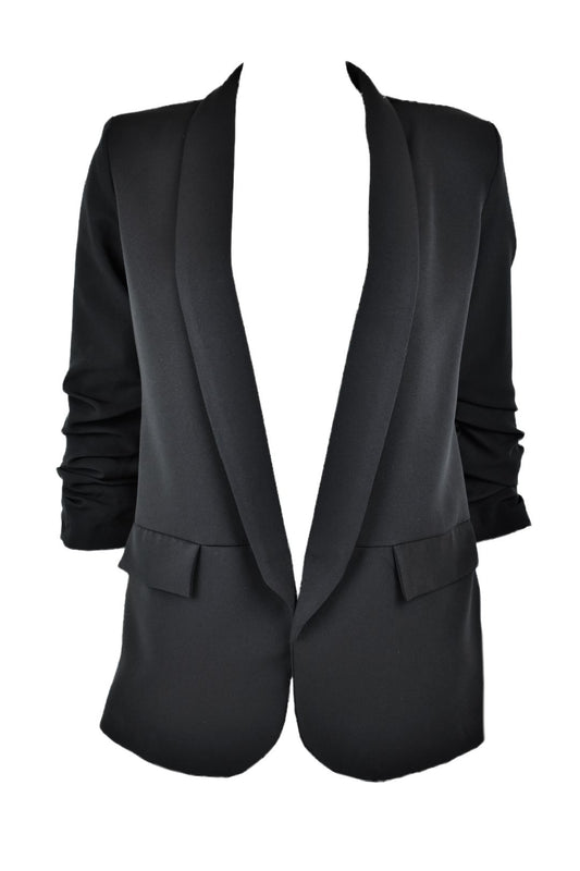 Black Ruched Sleeve Blazer