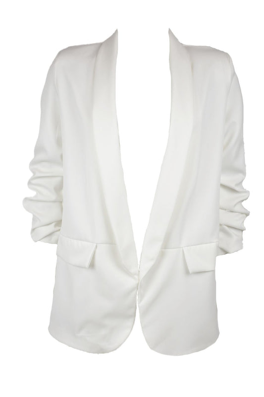 White Ruched Sleeve Blazer