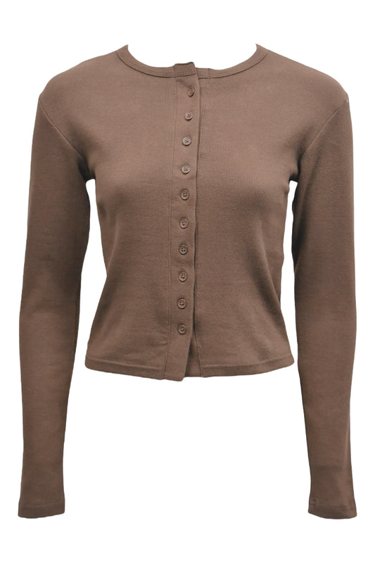 Brown & Cream Striped Button Up Ribbed Co-ord