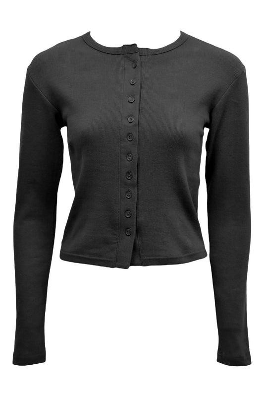 Black Ribbed Button Up Long Sleeve Top & Flared Trousers Co-ord