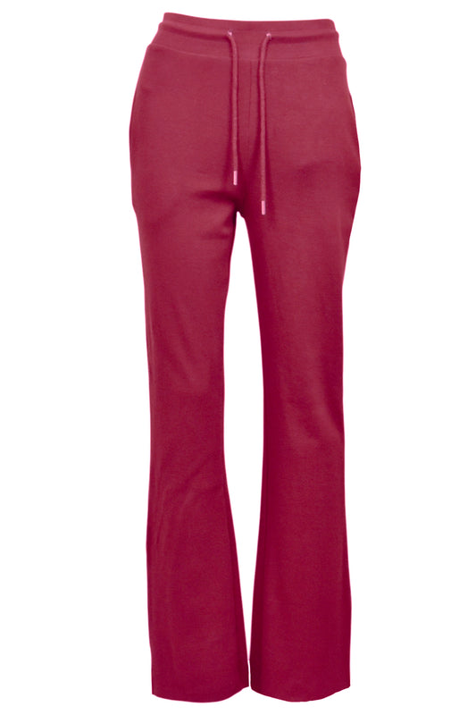 Burgundy Ribbed Button Up Long Sleeve Top & Flared Trousers Co-ord