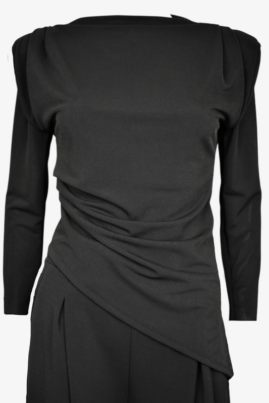 Black Asymmetric Long Sleeve Ruched Top & Wide Leg Trousers Co-ord
