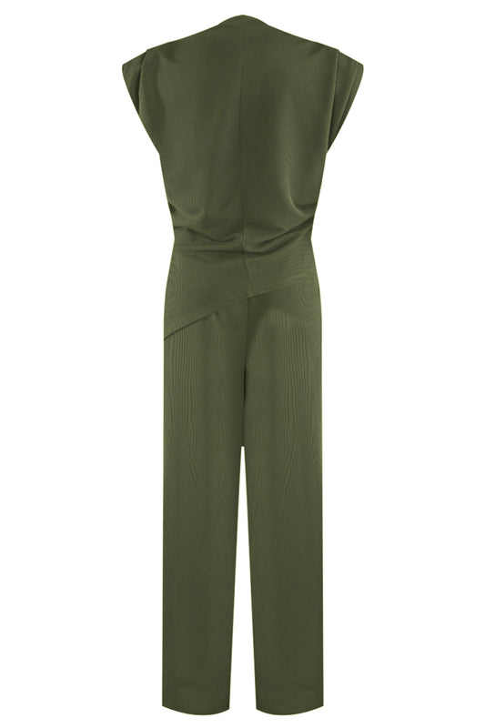 Khaki Asymmetric Ruched Top & Wide Leg Trousers