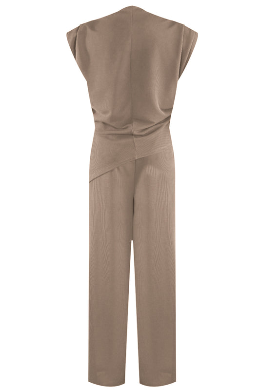 Taupe Asymmetric Ruched Top & Wide Leg Trousers