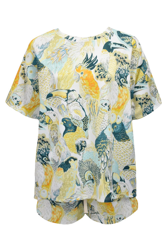 Yellow & Blue Tropical Bird Print Shorts Co-ord