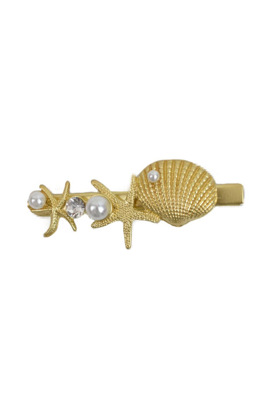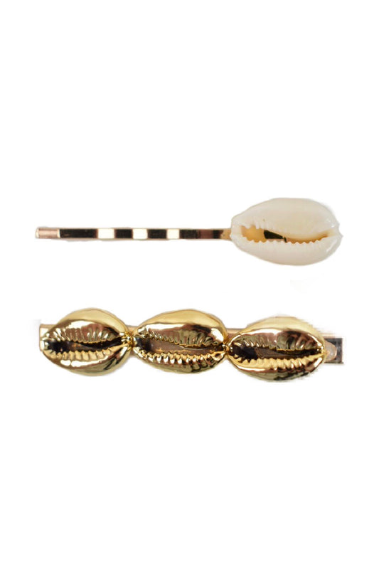Gold Shell & Pearl 2 Piece Hairslide Set