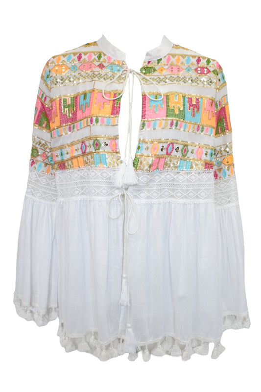 Navy Aztec Fringe Cardigan