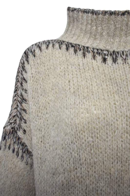 Sold outBrown Roll Neck Puff Sleeve Jumper