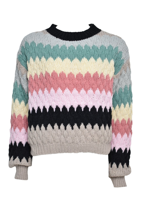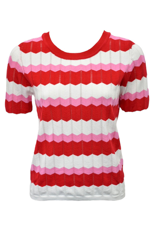 Burgundy & Pink Striped Knitted Quarter Zip Jumper