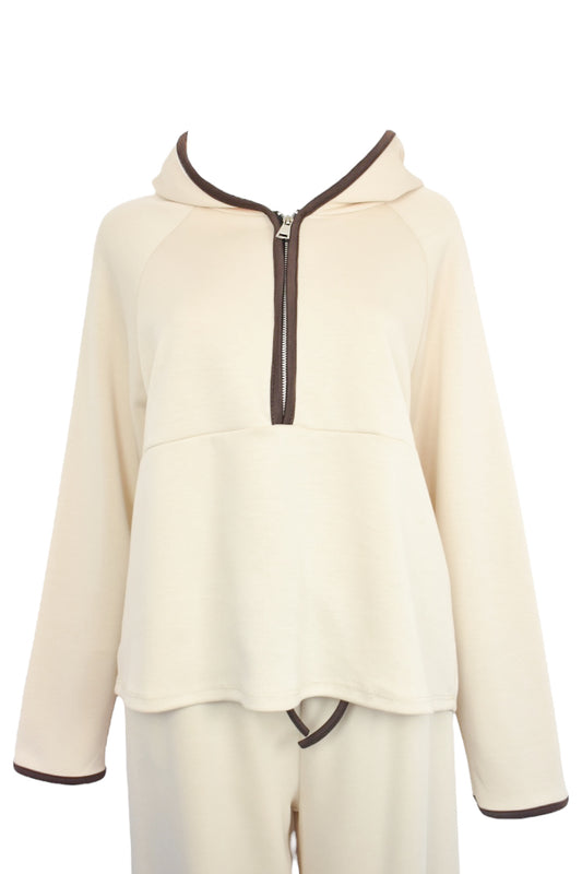 Beige Hooded Half Zip Wide Leg Loungesuit