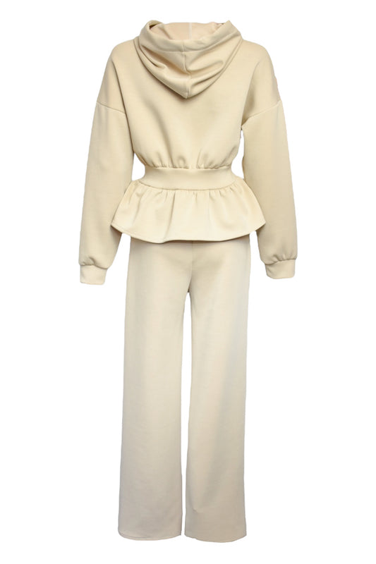 Beige Peplum Jacket Wide Leg Trousers Lougesuit