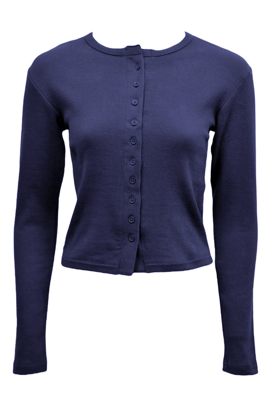 Navy Ribbed Button Up Long Sleeve Top & Flared Trousers Co-ord