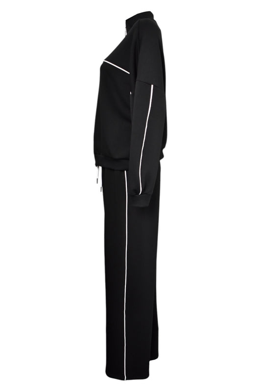 Black Peplum Jacket Wide Leg Trousers Loungesuit