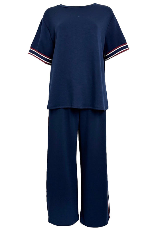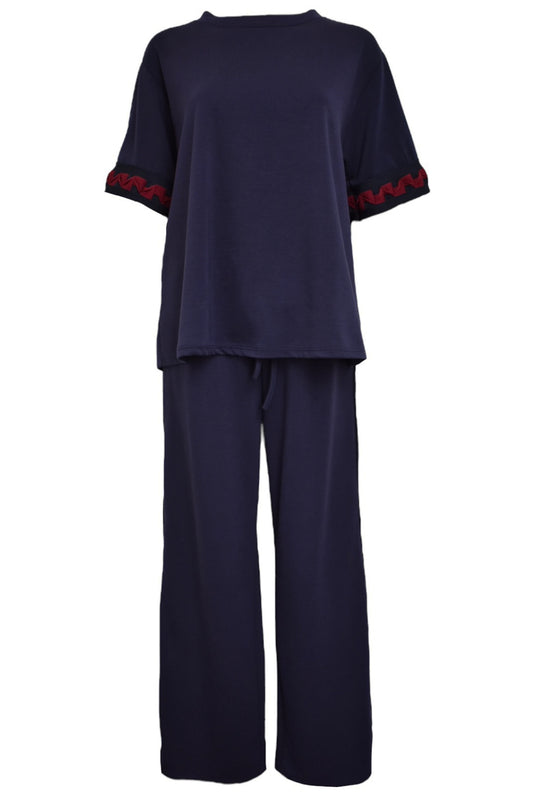 Navy Peplum Jacket Wide Leg Trousers Loungesuit