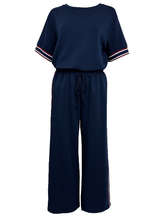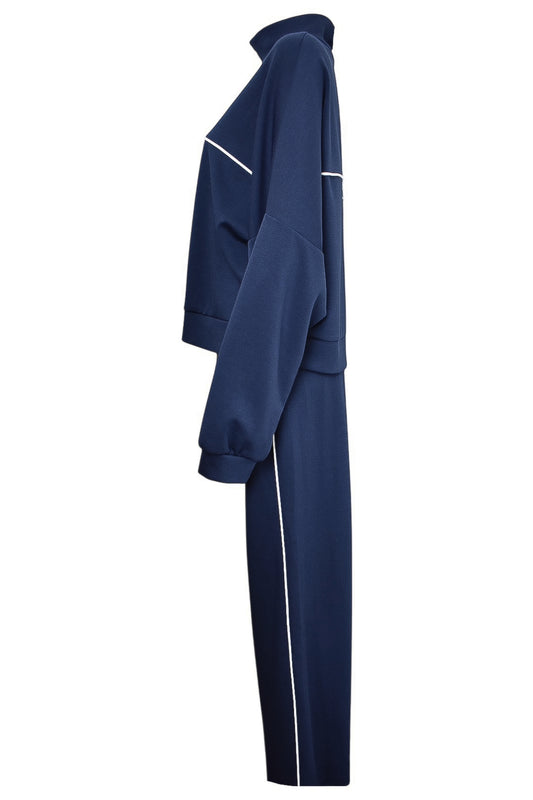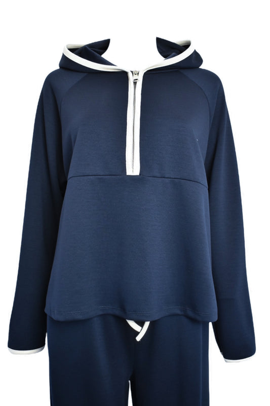 Navy Hooded Half Zip Wide Leg Loungesuit