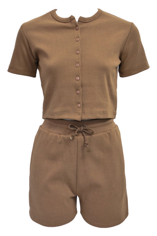 Brown Velvet & Diamante Long Sleeve Bodysuit