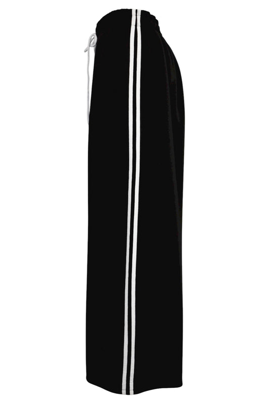 Burgundy & Black Side Stripe Wide Leg Joggers