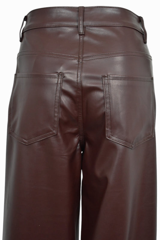 Chocolate Brown Faux Leather Wide Leg Trousers