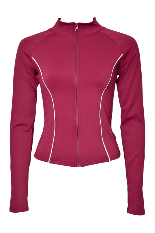 Burgundy Active Contrast Piping Zipped Jacket & Flares Set