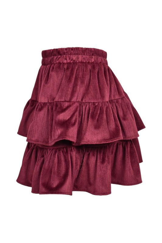 Sold outBurgundy Velvet Tiered Ruffle Skirt