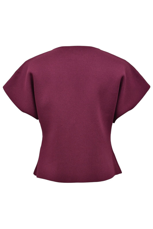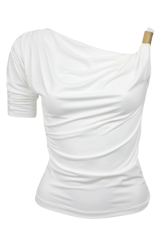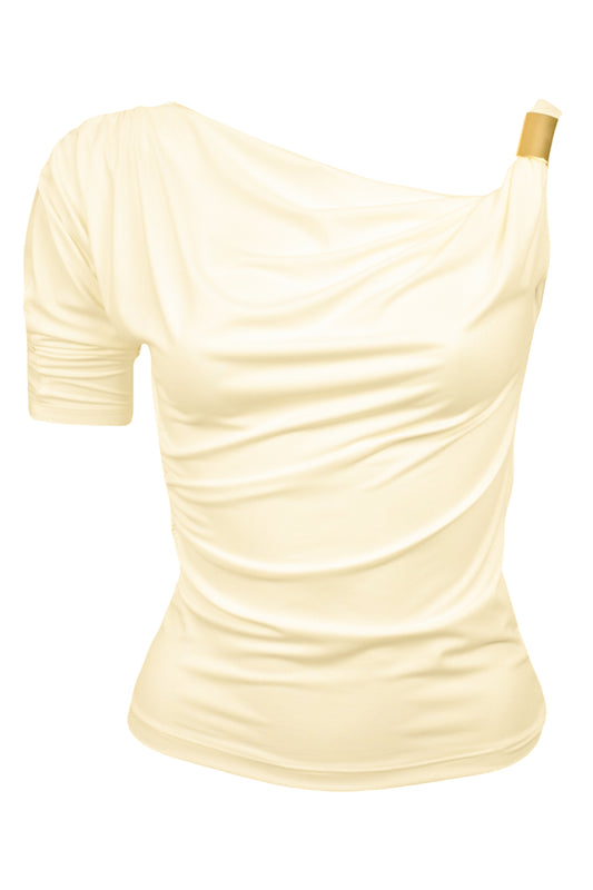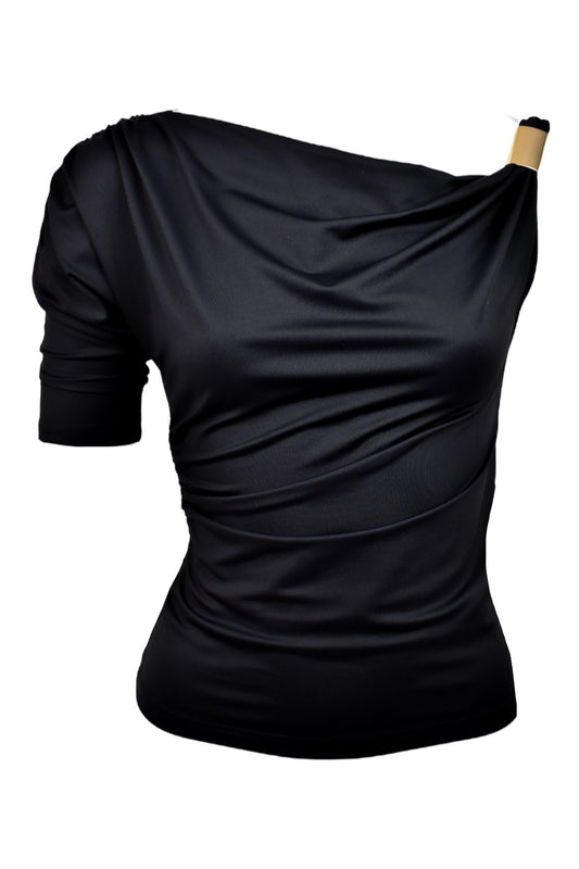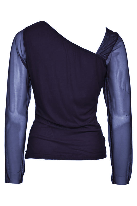 Burgundy Asymmetric Neck Ruched Sheer Top