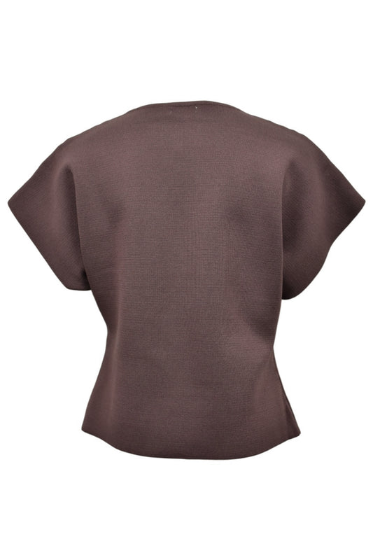 Brown Gold Button Gathered Shoulder Sweatshirt