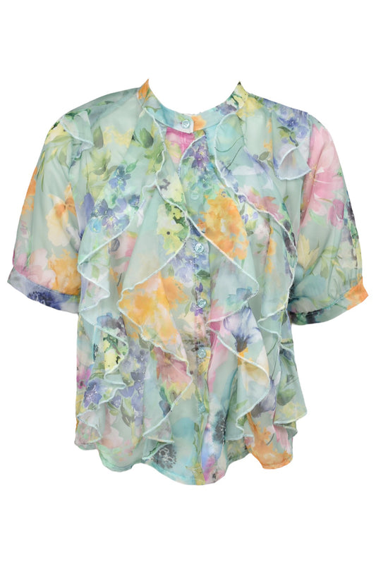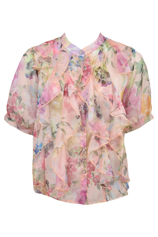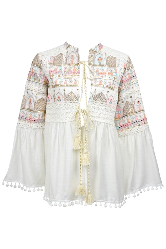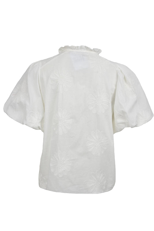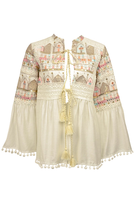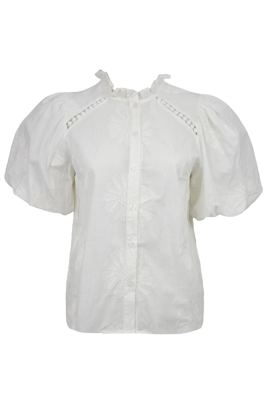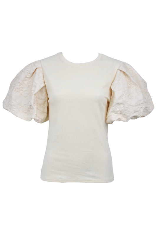 Cream Gold Button Gathered Shoulder Sweatshirt