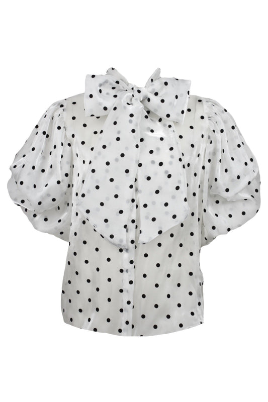 Sold outBrown Polka Dot Bow Sheer Blouse