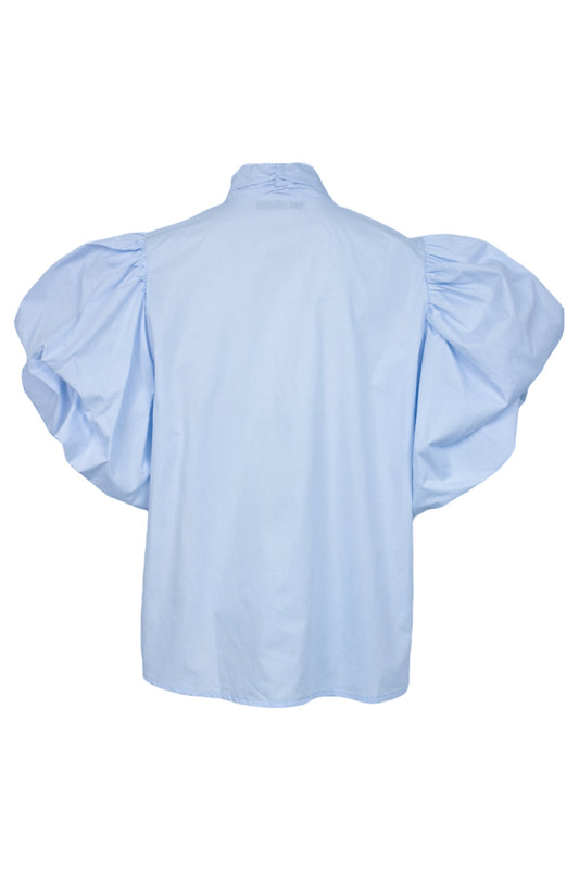 Blue Bow Balloon Sleeve Blouse
