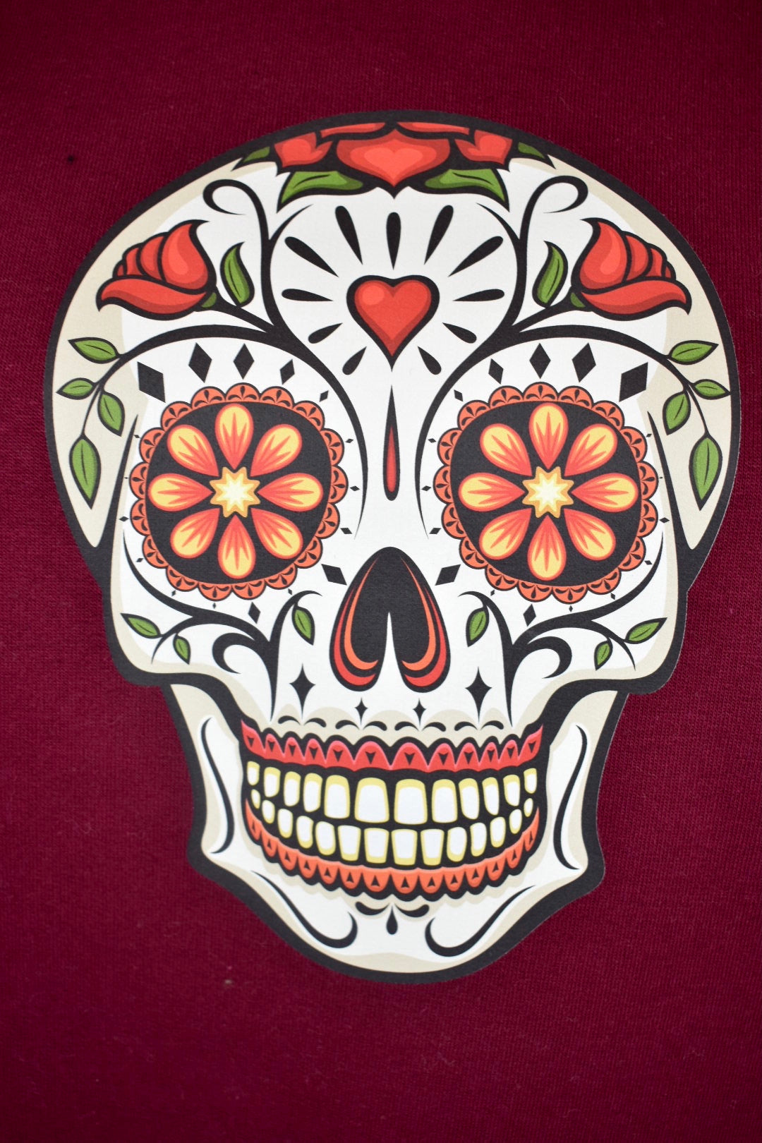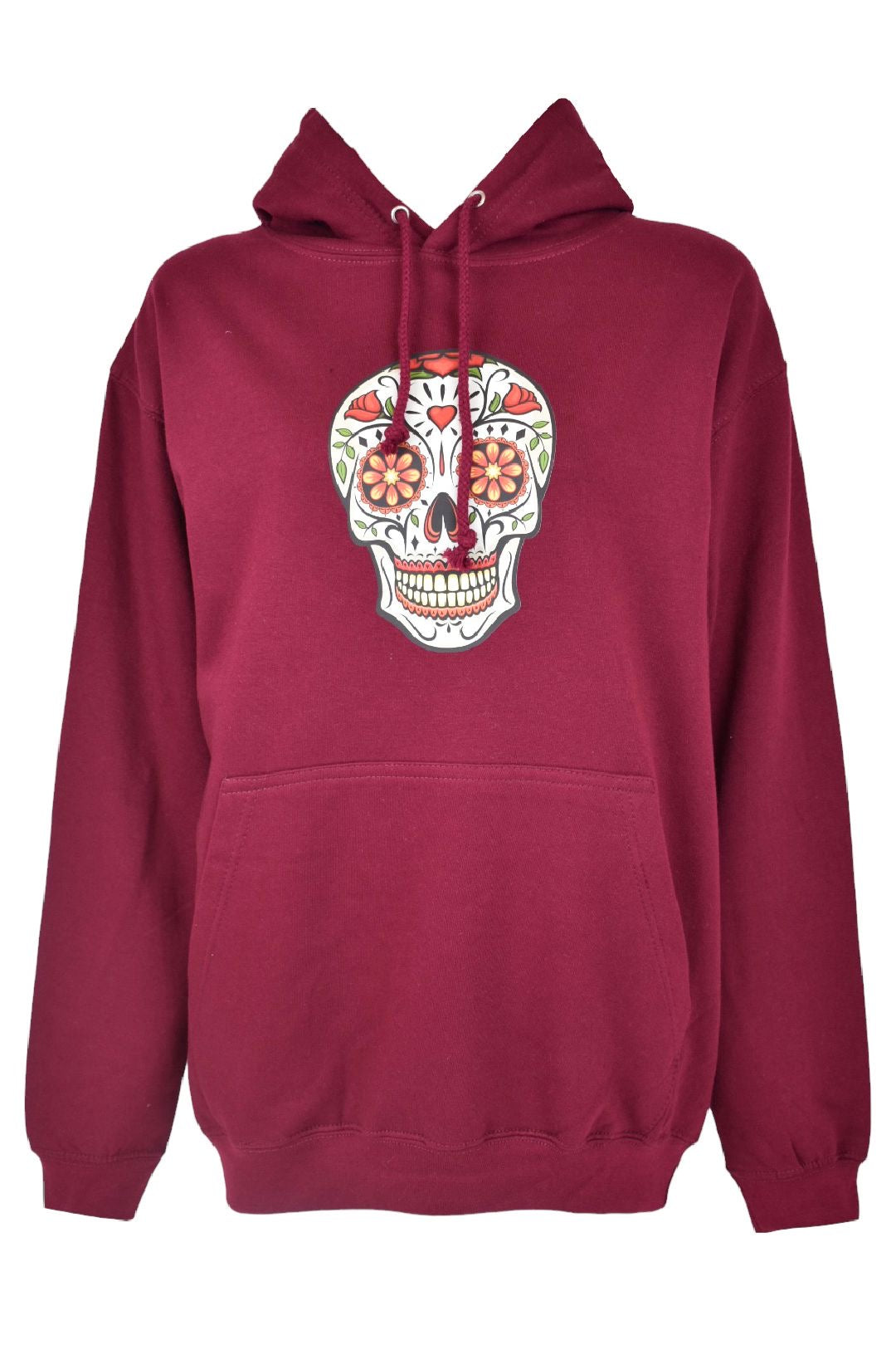 Designed & printed exclusively in house by us, our Burgundy Sugar Skull Hoodie offers a bold and unique look. With its oversized fit, a hood with drawstrings & a roomy front pocket, this hoodie boasts a stunning sugar skull design in the colour of the moment that will make a statement.