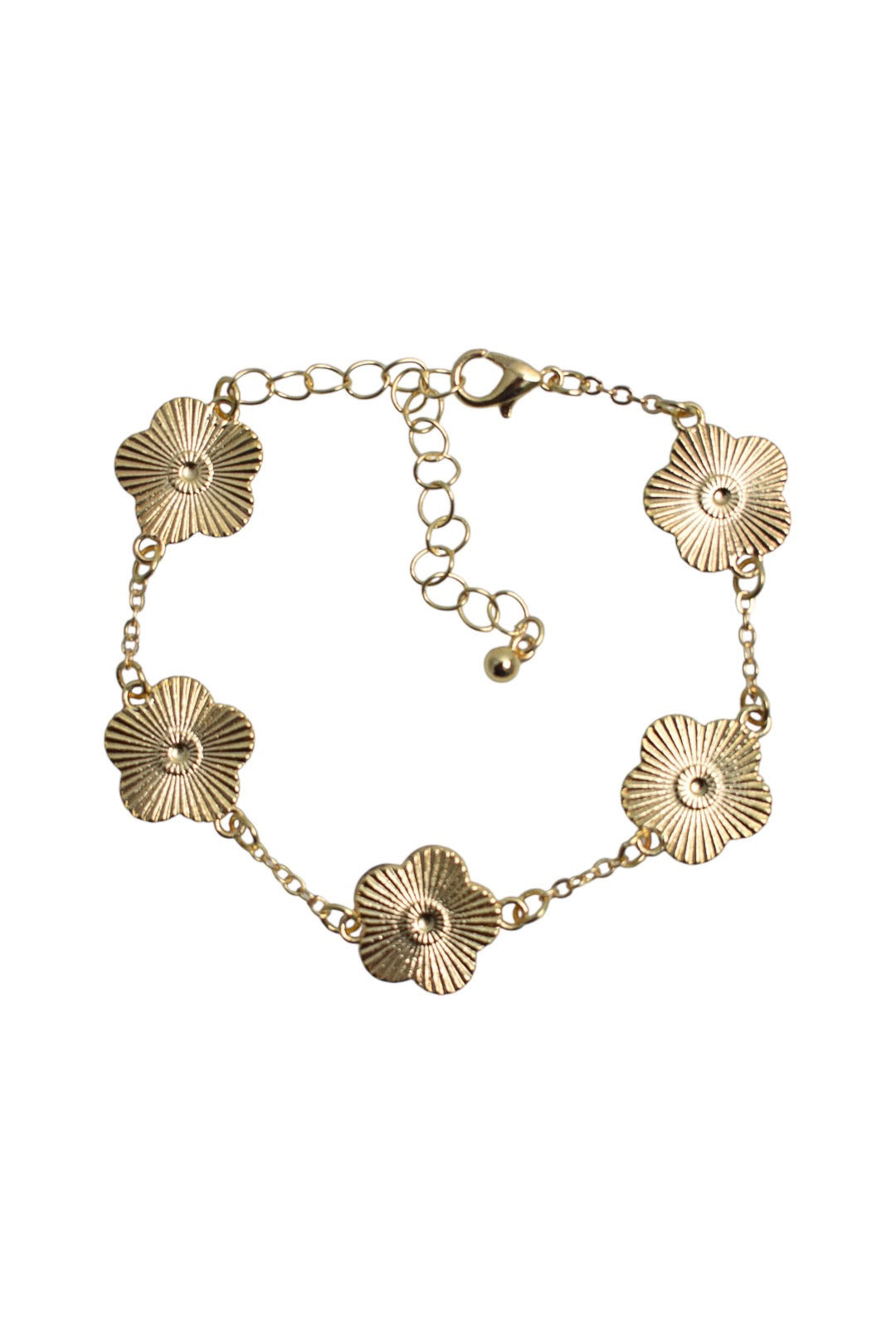 Gold Engraved Five Leaf Clover Bracelet