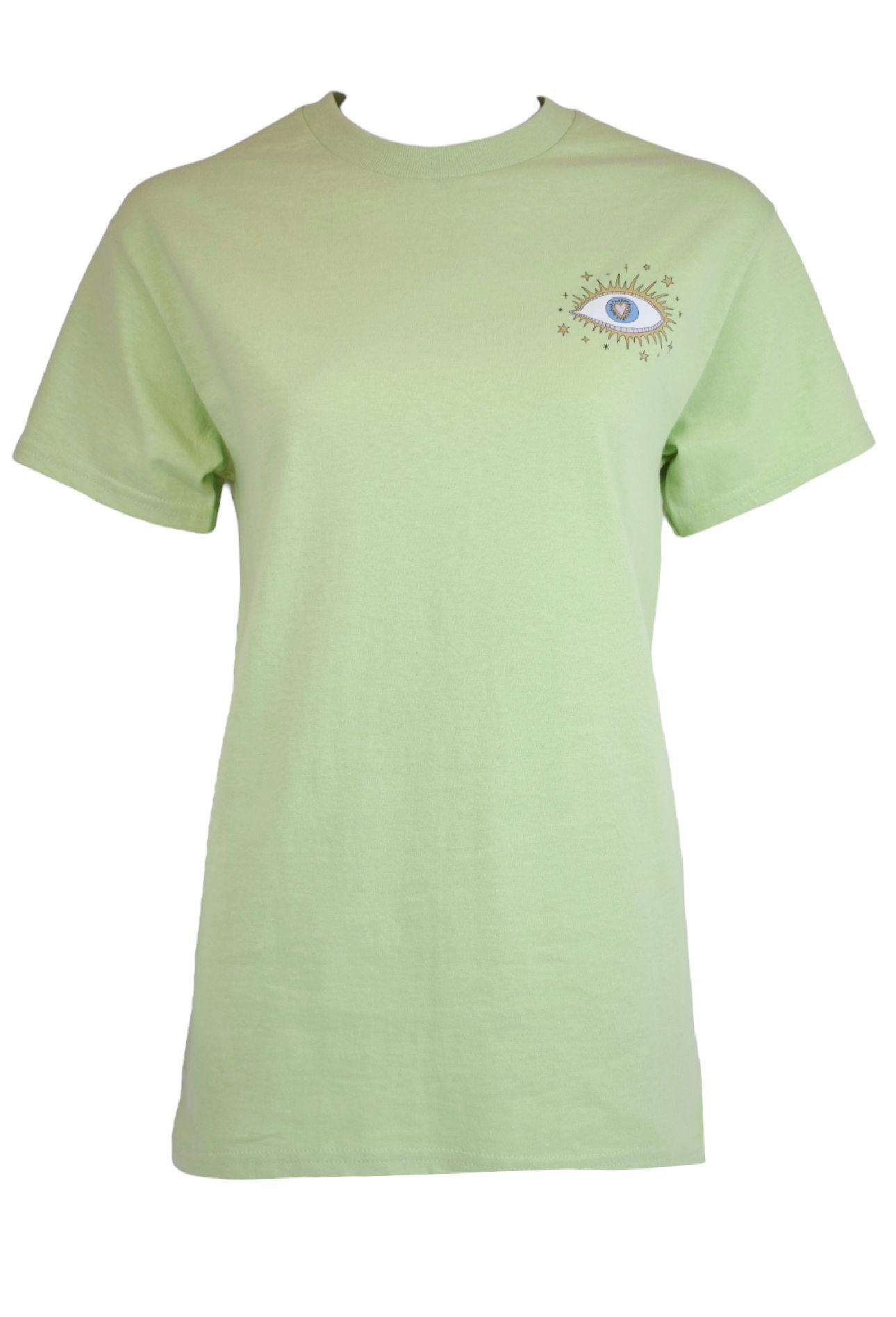Experience a one-of-a-kind design from Jessie & Co with the Green Starry Eye T-Shirt! Stand out from the crowd with its oversized fit and trendy drop shoulders, making it a truly unique and eye-catching piece.