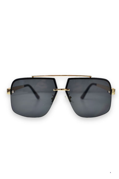 Elevate your style with our PALM SPRINGS Black Sunglasses featuring an elegant frameless top bar design. The luxurious gold arms perfectly complement the sophisticated tinted black lenses, which offer complete UV400 protection. These sunglasses aren't just a fashion statement—they're essential protection for your eyes with unmatched sophistication.